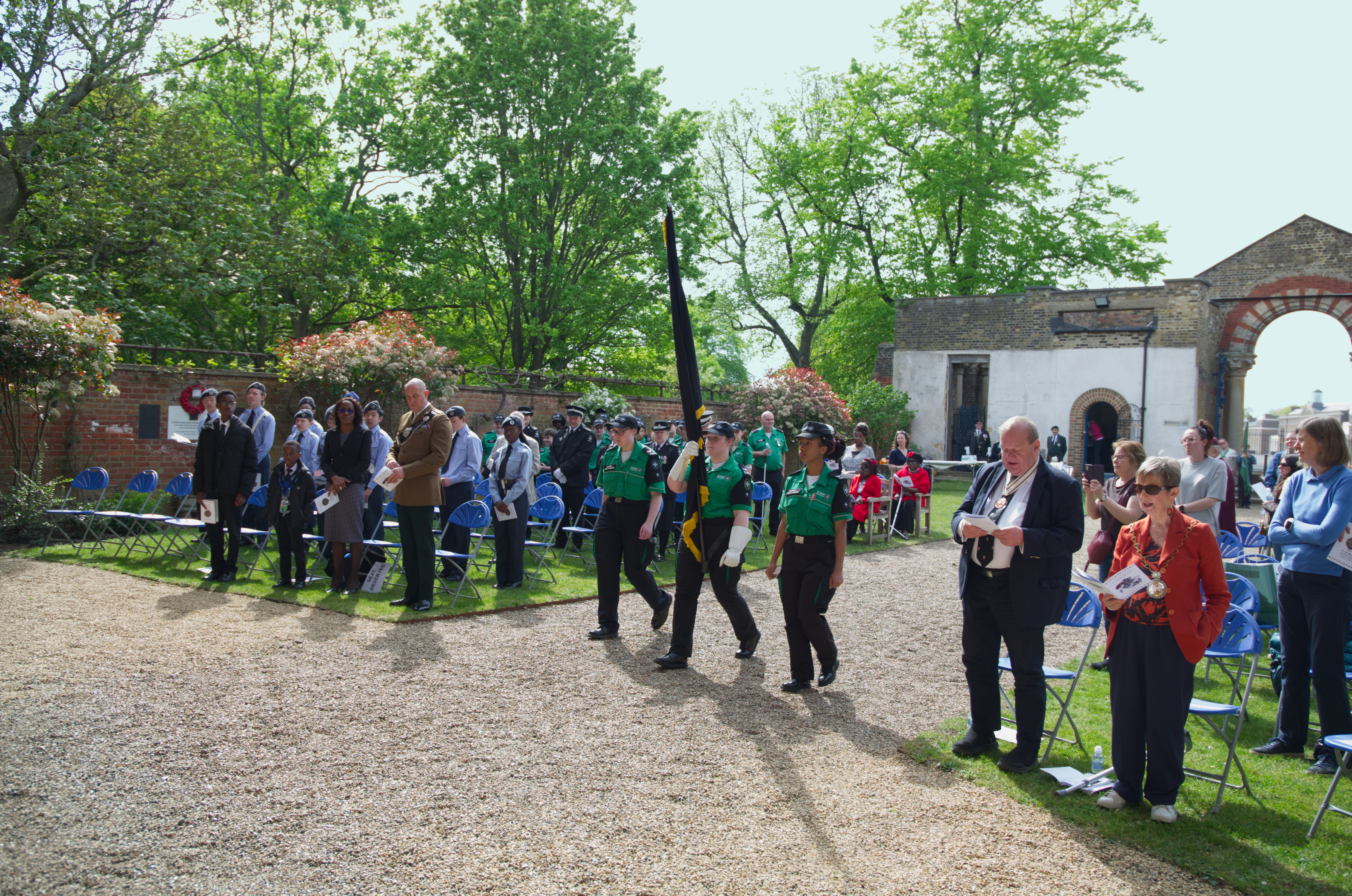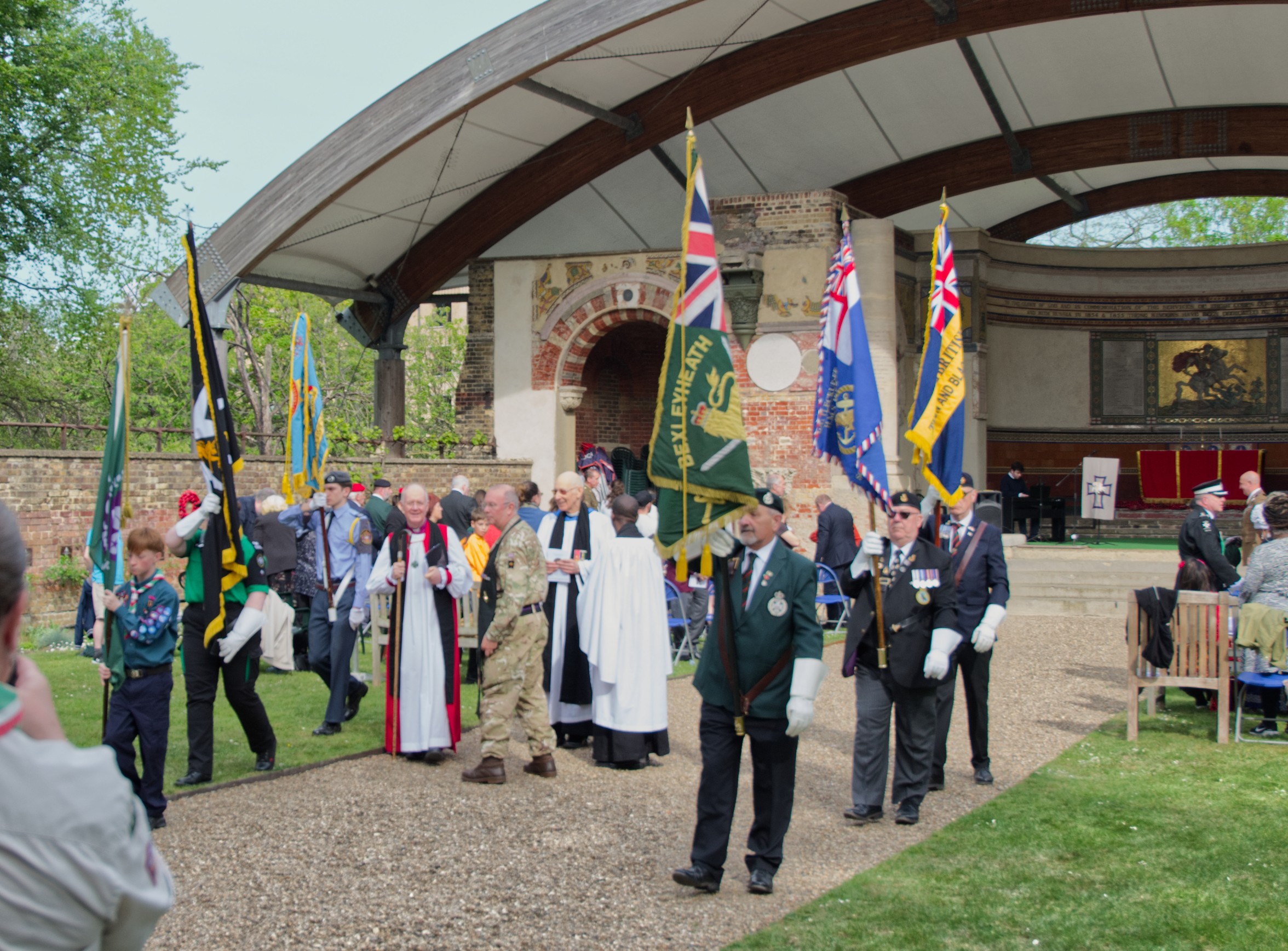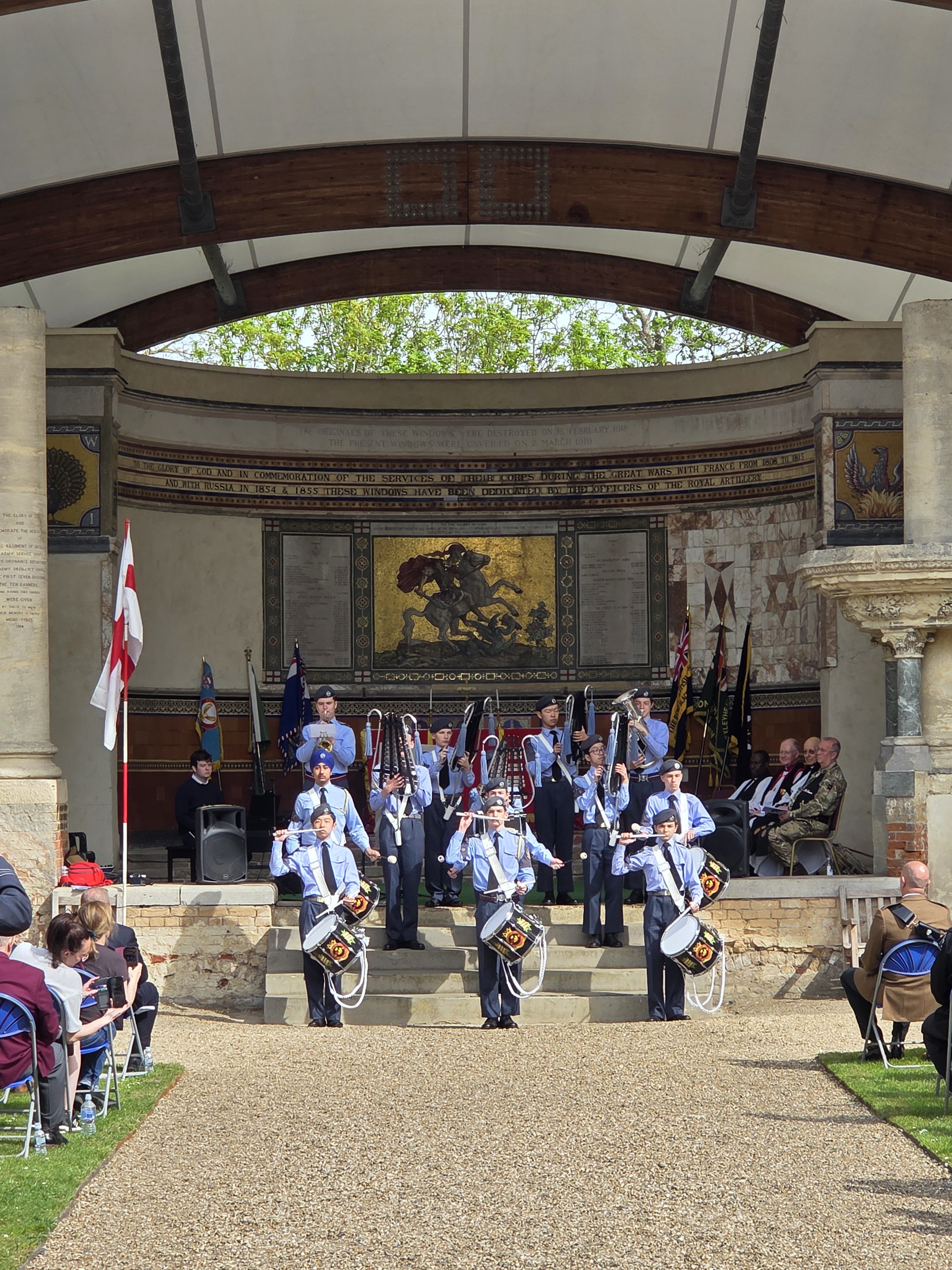 Our annual St Georges Day Service was held on the afternoon of Sunday 26th April in brilliant spring sunshine. There was good support from the St Johns Ambulance and the Air Force Cadets whose Band performed to its normal immaculate standard.
